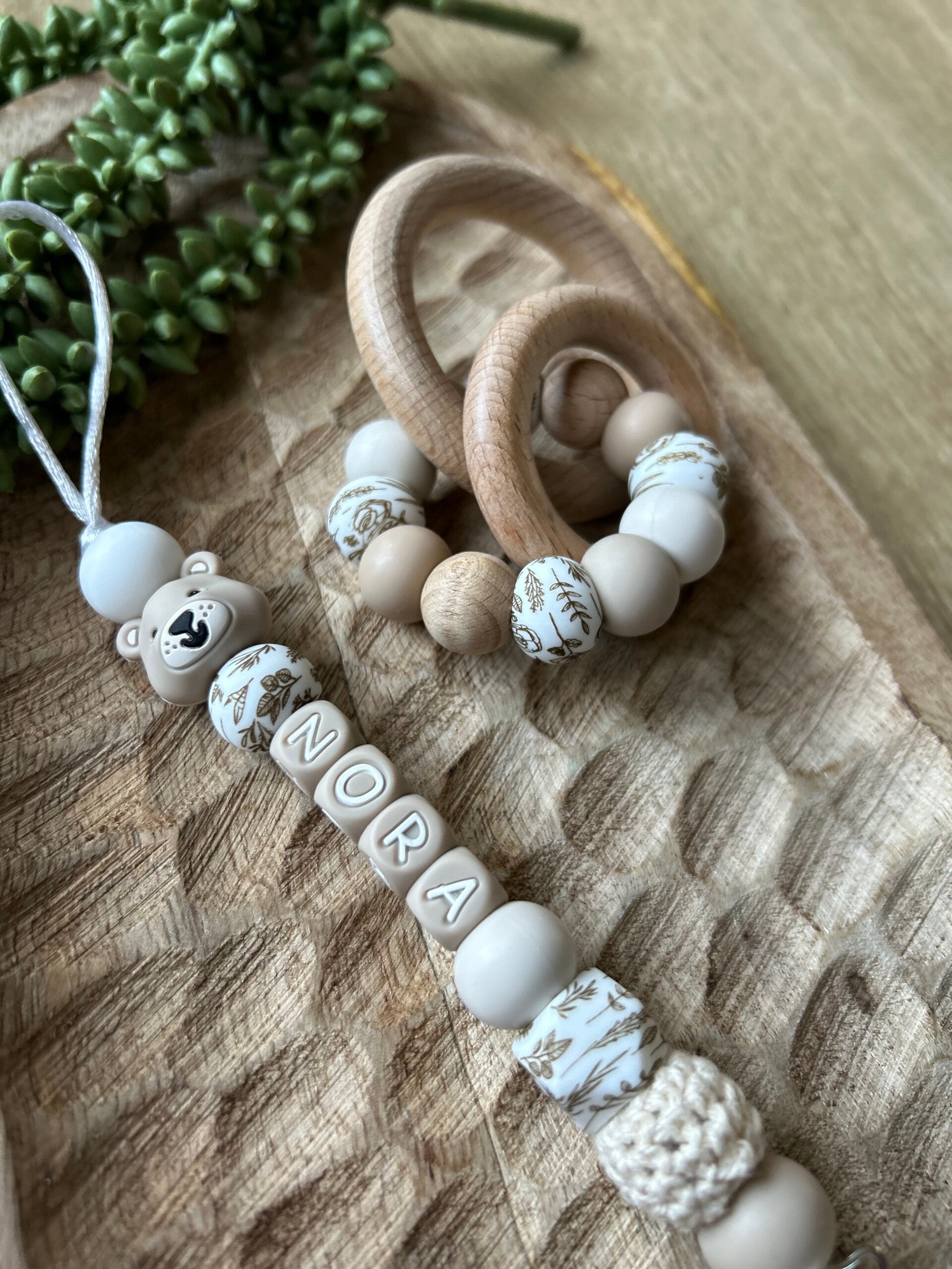 Handgemaakte babyaccessoires voor speenkoorden, bijtringen & wagenspanners