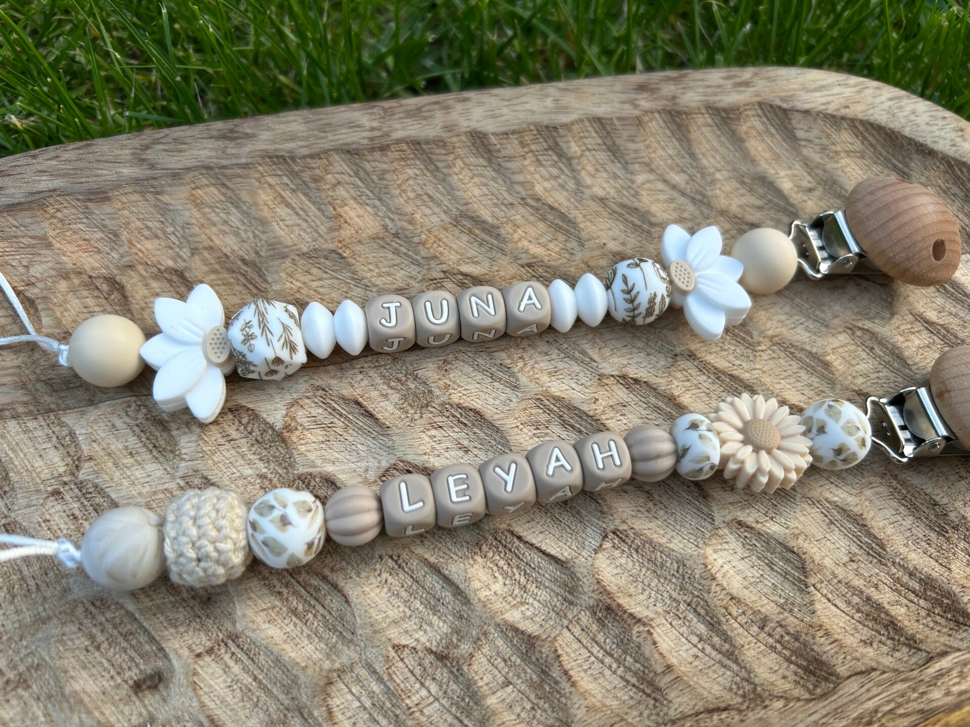Dit speenkoord is een echte favoriet van ouders. Met liefde met de hand gemaakt in prachtige naturel kleuren en afgewerkt met een vrolijke bloem. Tijdloos, speels en perfect voor elke dag.