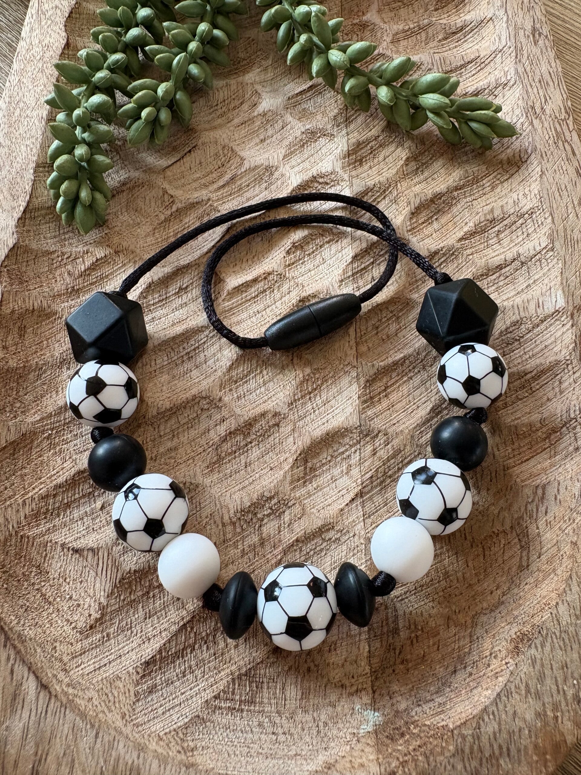 • Sportief Design: Handgemaakt met gedetailleerde voetbalkralen.