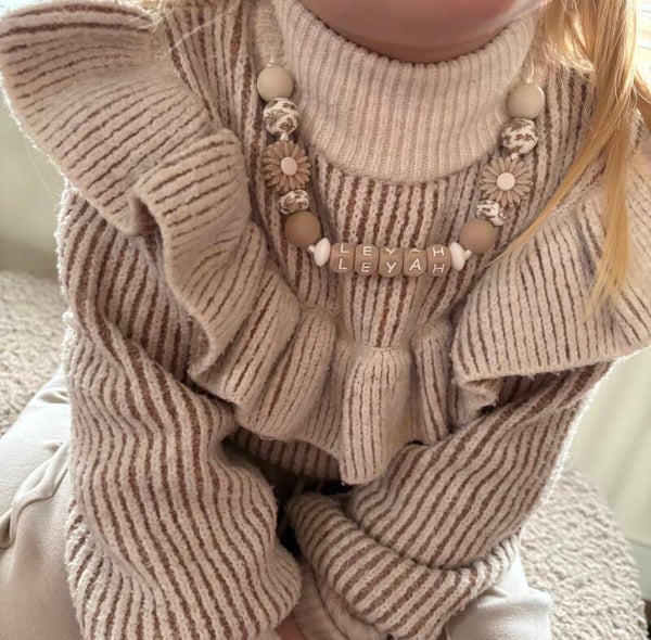 een prachtig, gepersonaliseerd sieraad voor jouw kleintje. Waar de klassieke collectie ophoudt, gaan wij een stapje verder door de natuurlijke look te combineren met de naam van je kindje.