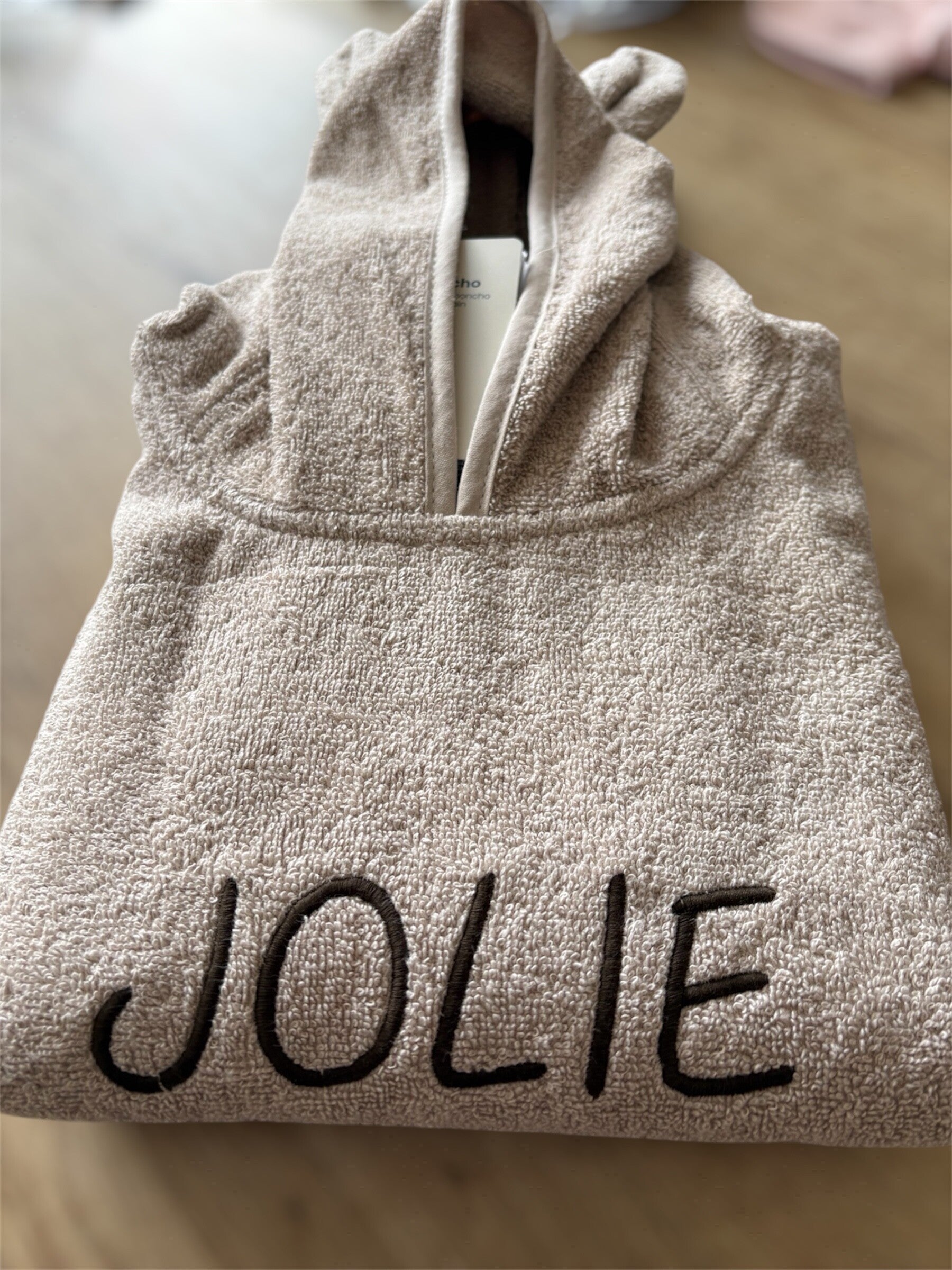 Maak badmomentjes extra speciaal met deze zachte beige badponcho van Jollein, gepersonaliseerd met naam 🤍