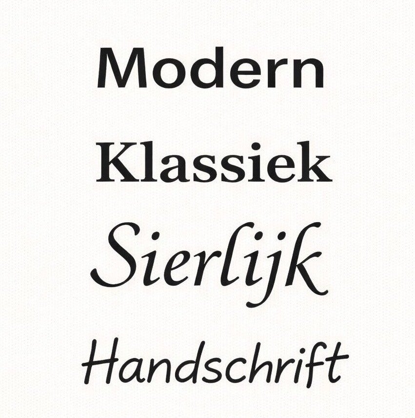 • Verkrijgbaar in verschillende kleuren en lettertypes